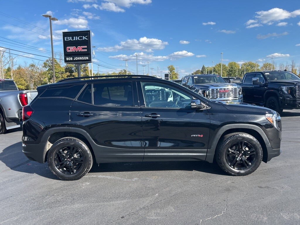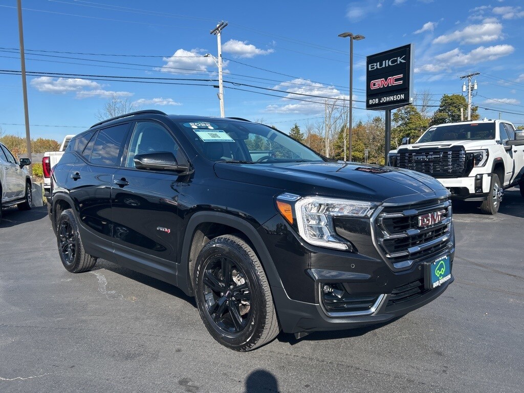Experience confident capability and premium comfort in this AWD 2022 GMC Terrain AT4, now CARBRAVO CERTIFIED. The smooth 9-speed automatic transmission pairs with a capable 1.5L DOHC engine to deliver responsive acceleration and impressive efficiency, estimated at 25/28 MPG. Inside, youll ride in refinement with features like the Skyscape Power Sunroof w/ Power Sunscreen, Head-Up Display, and a Safety-focused cabin equipped with GMC Pro Safety Plus, Lane Change Alert w/ Side Blind Zone Alert, Rear Cross-Traffic Alert, Rear Park Assist, and Safety Alert Seat. The tech suite includes HD Surround Vision, the Tech Package, and a comprehensive infotainment system to keep you connected and informed on every journey. Exterior details such as Ebony Twilight Metallic finish, 19-inch wheels, and a rugged yet refined stance signal both versatility and style, while the Power Liftgate adds everyday convenience. Certified with a low odometer and CARBRAVO certification, this Terrain AT4 blends off-road-ready capability with everyday practicality. Schedule a test drive or come see it in person to feel the balance of luxury and capability. Please verify the accuracy of information in regard to the actual vehicle equipment, miles, vehicle specifications, location, and vehicle price with dealer.