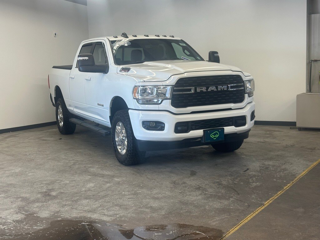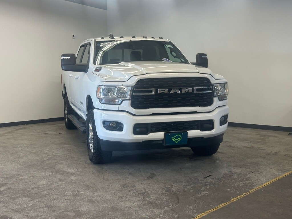 Take command of the road in this 2023 Ram 2500 Big Horn, finished in striking Bright White Clearcoat and built to handle whatever life throws your way. With its Off-Road Package, Snow Chief Group, tow hooks, and ParkView Rear Back-Up Camera, this heavy-duty truck is ready for both work and adventure. Inside, youll find modern comfort and convenience with heated front seats, a heated steering wheel, Bluetooth handsfree calling, integrated voice command, and an 8.4 touchscreen with Uconnect 5, Apple CarPlay/Android Auto, SiriusXM, and a 4G LTE Wi-Fi Hotspot to keep you connected wherever you go. The Level 2 Equipment Group and Sport Appearance Package add premium touches, while the rear sliding power window, rear step bumper, and mirror running lights bring both utility and style. Best of all, this Ram is CarBravo Certified Pre-Owned, giving you peace of mind with a 6-month/6,000-mile limited bumper-to-bumper warranty (no deductible), a 172-point inspection, courtesy transportation, and trial access to SiriusXM and OnStar safety services including Automatic Crash Response and Roadside Assistance. Tough, capable, and packed with features, this Ram 2500 Big Horn is ready to be your next partner on the road. Dont wait see it today at Bob Johnson GM, 7000 W Main Rd, Le Roy, NY 14482, or call (585) 768-2251 to schedule your test drive!