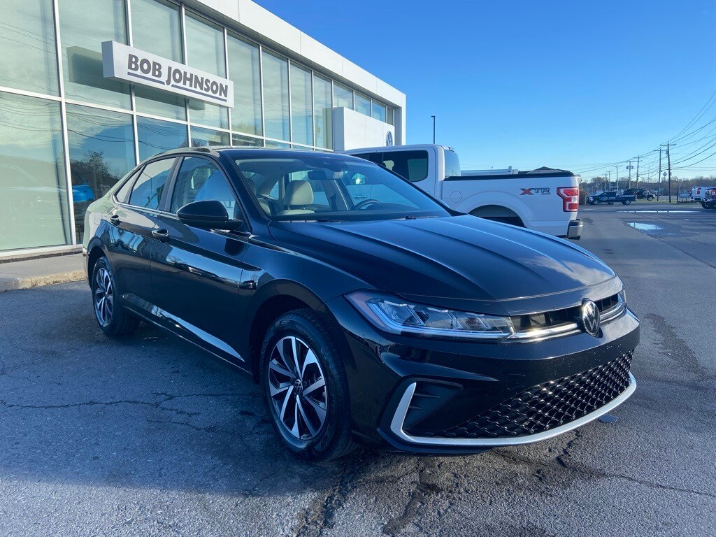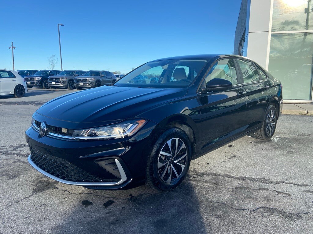 Jetta 1.5T S, 4D Sedan, 1.5L I-4 DI DOHC Turbocharged, 8-Speed Automatic with Tiptronic, FWD, Deep Black Pearl, Storm Gray Cloth, 4-Wheel Disc Brakes, Active Blind Spot Monitor, Air Conditioning, Cloth Seat Trim, Dual front impact airbags, Dual front side impact airbags, Electronic Stability Control, Emergency communication system: VW Car-Net Safe & Secure 5-year, Exterior Parking Camera Rear, Fully automatic headlights, Leather Shift Knob, Leather steering wheel, Radio: MIB3 Composition Color w/8" Touchscreen, Rain sensing wipers, Remote keyless entry, Speed-sensing steering, Steering wheel mounted audio controls, Wheels: 16" 2-Tone Machined Alloy. Odometer is 6673 miles below market average! 3157888989. Certified. 2025 Volkswagen Jetta 1.5T S