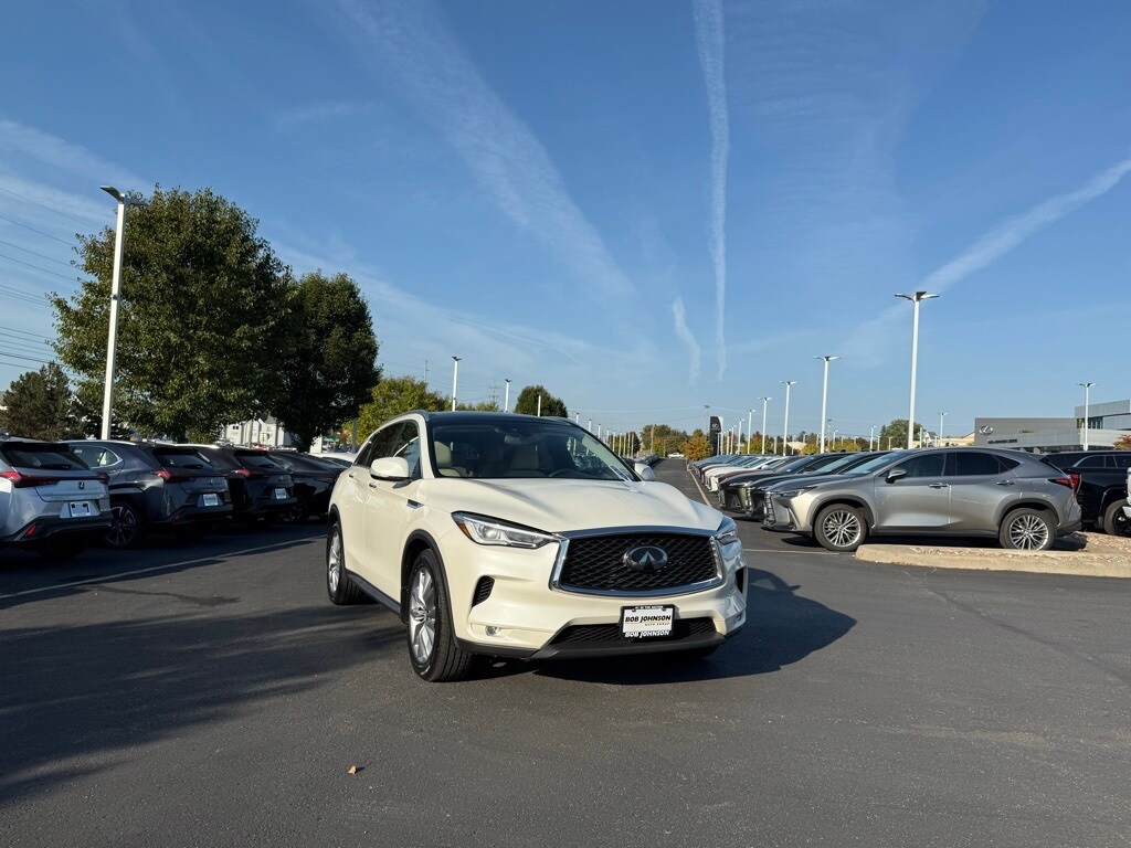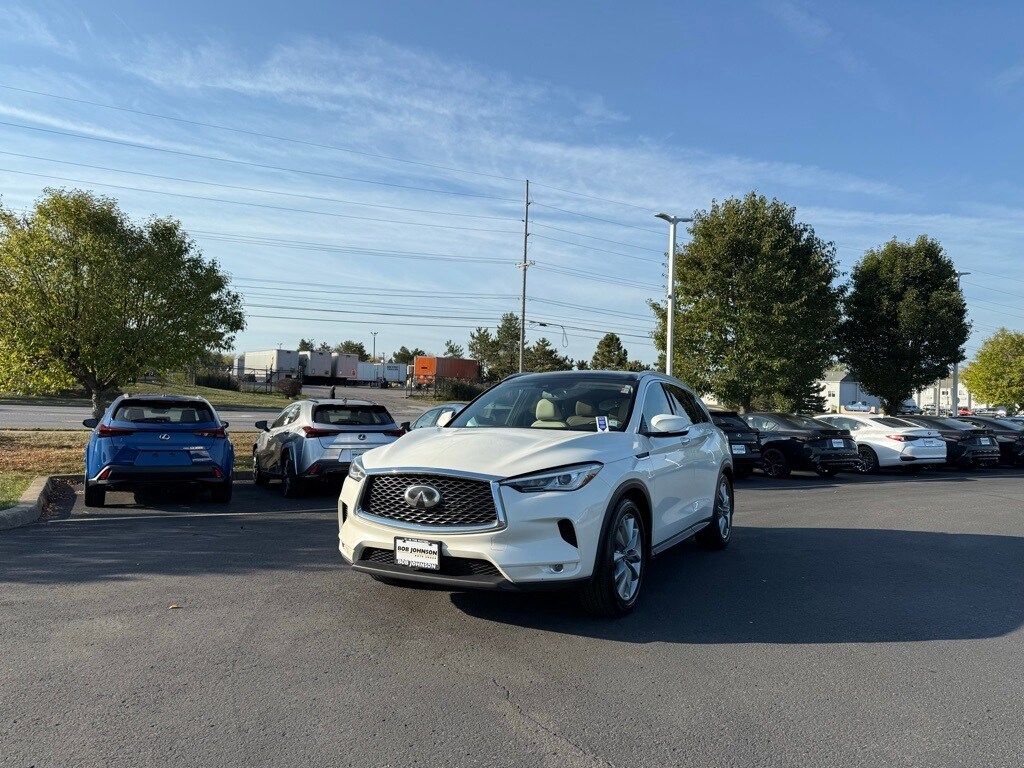 Rear Back-Up Camera, Bluetooth, Hands Free, QX50 LUXE, I4, CVT, AWD, Majestic White, Wheat Artificial Leather.