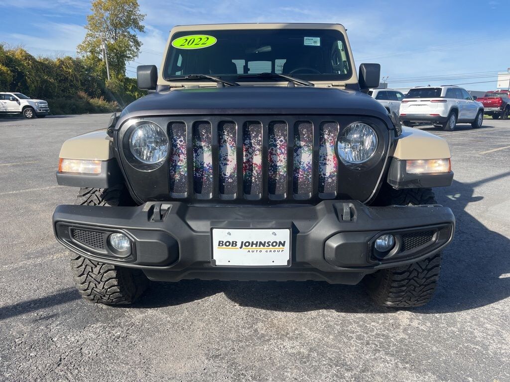 240 Amp Alternator, 4-Wheel Drive Decal, 97 MPH Vehicle Max Speed Calibration, AM/FM radio, Anti-Spin Differential Rear Axle, Black Grille, Body Color Fender Flares (2-Piece), Bridgestone Brand Tires, Class IV Receiver Hitch, Daytime Running Lamp System, Deep Tint Sunscreen Windows, Front Heavy Duty Red Accent Shock Absorbers, Heavy-Duty Engine Cooling, Mold In Color Bumper w/Gloss Black, MOPAR All-Weather Slush Mats, ParkView Rear Back-Up Camera, Protection Sill Rails, Quick Order Package 24K Willys Sport, Radio: Uconnect 4 w/7" Display, Rear Heavy Duty Red Accent Shock Absorbers, Trailer Hitch Zoom, Trailer Tow Package, Wheels: 17" x 7.5" Black Aluminum w/Gray Pad, Willys, Willys Hood Decal. 2022 Jeep Gladiator Sport Limited Edition Gobi Clearcoat