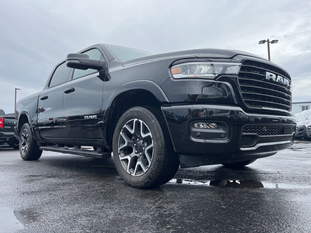 Balance Of Factory Warranty Remaining!, #1 Seat Foam Cushion, 3 Rear Seat Head Restraints, 4 Way Front Headrests, Accent Color Premium Power Mirrors, Auto Power-Folding Mirrors, Auto-Dimming Exterior Driver Mirror, Black Interior Accents, Black Painted Exterior Mirrors Caps, Body Color Front Bumper, Body Color Rear Bumper w/Step Pads, Bridgestone Brand Tires, Bucket Seats, Center Console Parts Module, Convex Wide-Angle Exterior Mirror Insert, Driver Seat Memory, Exterior Mirrors Courtesy Lamps, Exterior Mirrors w/Heating Element, Exterior Mirrors w/Memory, Exterior Mirrors w/Supplemental Signals, Front Seat Back Map Pockets, Full Length Upgraded Floor Console, GPS Navigation, Grille Surround 3 Body Color Tex 2 Black, Heated Front Seats, Heated Second Row Seats, Heated Steering Wheel, Laramie Level 1 Equipment Group, Leather Trimmed Bucket Seats, Navigation System, ParkView Rear Back-Up Camera, Power 2-Way Driver Lumbar Adjust, Power 2-Way Passenger Lumbar Adjust, Power Adjust 8-Way Driver Seat, Power Adjust 8-Way Front Passenger Seat, Quick Order Package 21H Laramie, Radio: Uconnect 5 Nav w/12.0" Display, Rain Sensitive Windshield Wipers, RAM Grille Badge - Chrome, Rear 60/40 Folding Split Recline Seat, Remote Tailgate Release, Sport Appearance Package, Sport Performance Hood, Ventilated Front Seats. 2025 Ram 1500 Laramie Diamond Black Crystal Pearlcoat